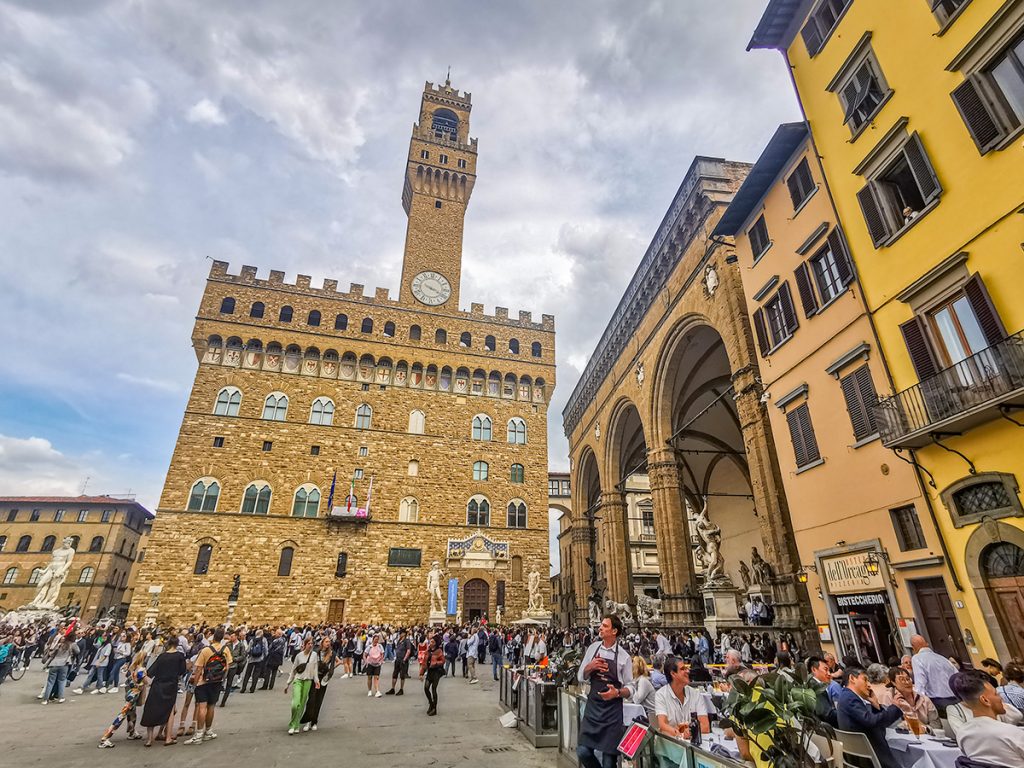 Die Piazza della Signoria ist der zentrale Platz von Florenz und ein lebendiges Zentrum des politischen und kulturellen Lebens der Stadt. Hier finden Sie beeindruckende Statuen und Gebäude, darunter die Kopie der berühmten „David“-Statue von Michelangelo, das Palazzo Vecchio, das Rathaus von Florenz und den Neptunbrunnen. Die Piazza ist ein großartiger Ort, um das Treiben der Stadt zu beobachten und in einem der umliegenden Cafés zu verweilen.