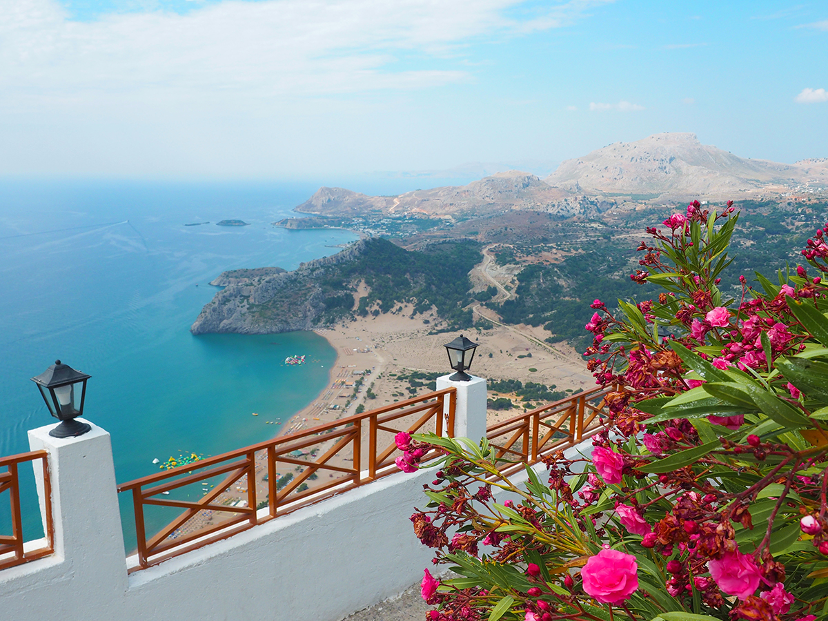 Weiter südlich liegt der wunderschöne, lange Sandstrand Tsambika Beach. Der Aussichtspunkt vom Tsambika Monastery gehört zu den beliebtesten Ausflugszielen von Rhodos und bietet einen grandiosen Blick auf den Strand. Für Wanderer empfehlen wir die kleine Wanderung vom Tsambika Beach zum Tsambika Monastery, auf der knapp 300 Höhenmeter zu bewältigen sind (Auf- und Abstieg).