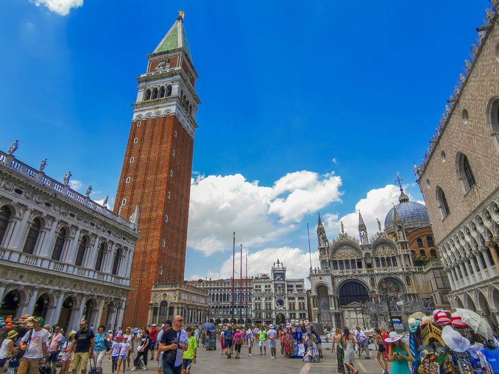 Der Markusplatz (Piazza San Marco) ist das Herzstück von Venedig und ein Muss für jeden Besucher. Hier befinden sich der Markusdom, der Dogenpalast und der Campanile.